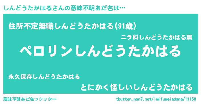 | ヒーロー風カッコイイあだ名 | 『スーパーシンドウタカハル』 |