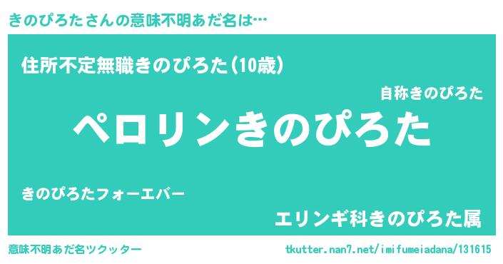 | 男性向けラノベタイトル風あだ名 | 『きのぴろたの憂鬱』『緋弾のキノピロタ』 |