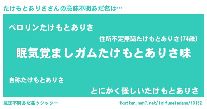 | 胡散臭い通販商品みたいなあだ名 | 『お金では代えられない隕石のかけら…その名も「たけもとありさ」』 |