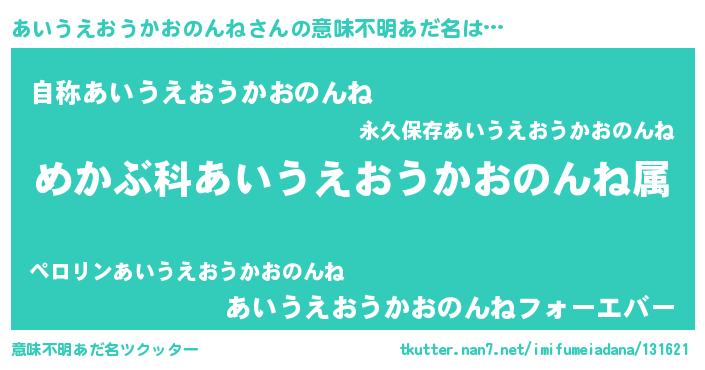 | 男性向けラノベタイトル風あだ名 | 『アイウエオウカオノンネスレイヤー』 |