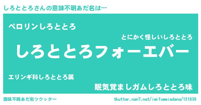 | 2回繰り返すあだ名 | 『ししろろ』『しろしろ』『ぼさぼさ』 |