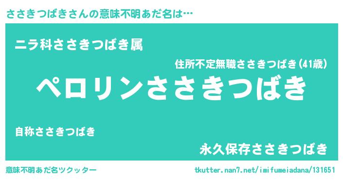| ヘコむあだ名 | 『ささっふぃ~』『ささきつばき(笑)』 |