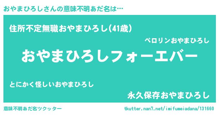 | 欧米人風あだ名 | 『おやまひろしクリステル』 |