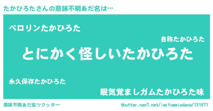 | 男性向けラノベタイトル風あだ名 | 『ダンジョンにたかひろたを求めるのは間違っているだろうか』 |