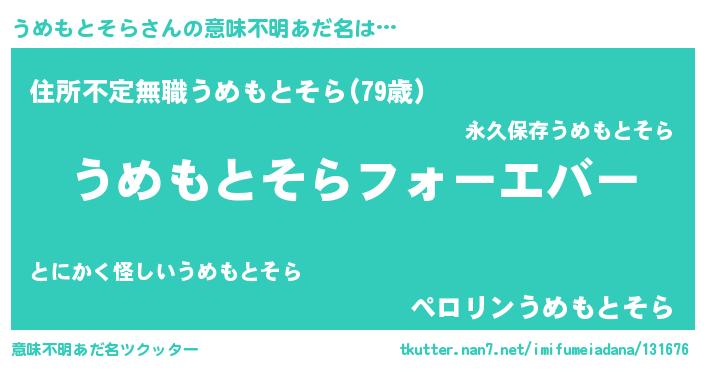 | ファンタジー風あだ名 | 『エターナルウメモトソラー』 |