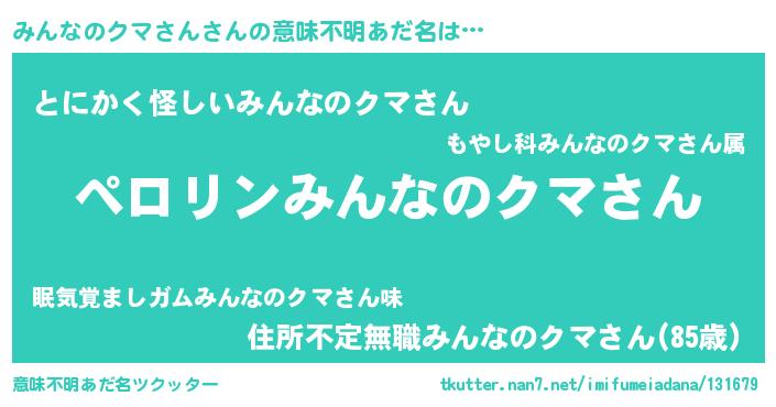 | 男性向けラノベタイトル風あだ名 | 『みんなのクマさんの憂鬱』 |