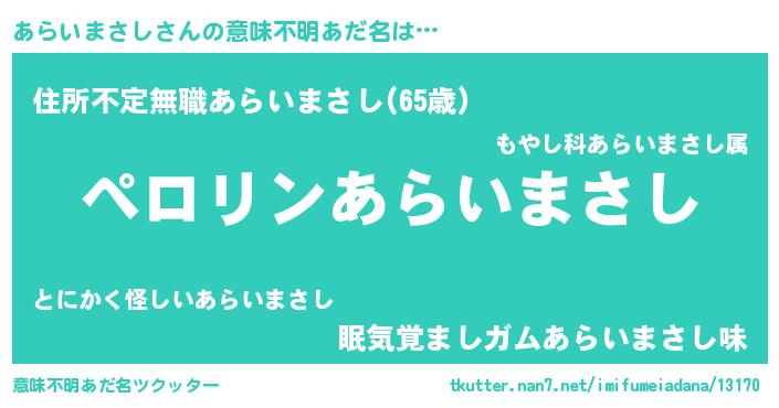 | ヒーロー風カッコイイあだ名 | 『スーパーアライマサシ』『仮面アラダー』 |