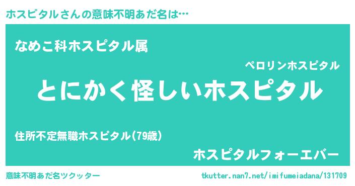 | 女子向けラノベタイトル風あだ名 | 『ホスピタル様がみてる』 |