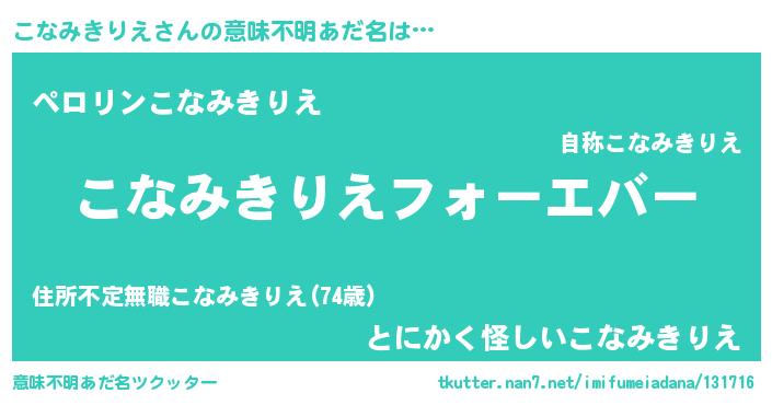 | 欧米人風あだ名 | 『こなみきりえクリステル』 |