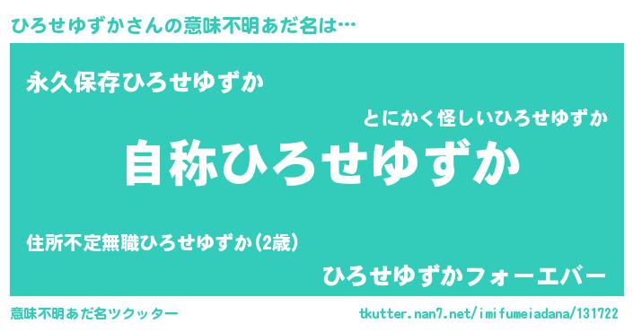 | ヒーロー風カッコイイあだ名 | 『究極戦士ヒロセユズカ』『幻影騎士ヒロ』 |