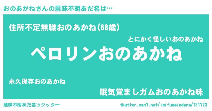 | 欧米人風あだ名 | 『マイケルおのあかね』 |