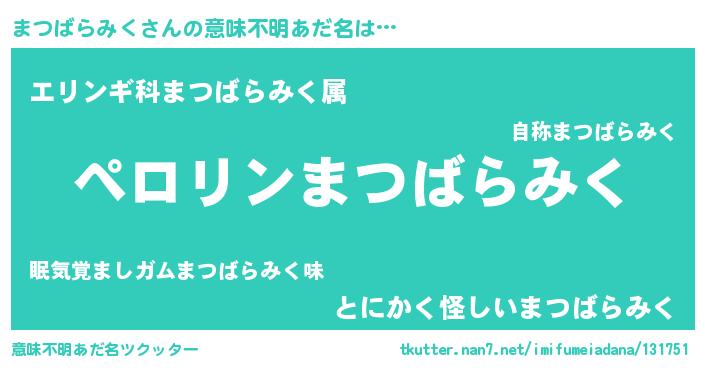| 胡散臭い通販商品みたいなあだ名 | 『億万長者になれるブレスレット…その名も「まつばらみく」』 |