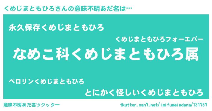 | ヘコむあだ名 | 『くめじまともひろ(小並感)』『くめを』 |