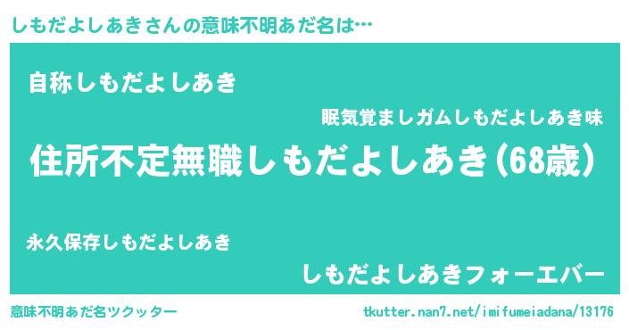 | 欧米人風あだ名 | 『ダレノガレしもだよしあき』 |