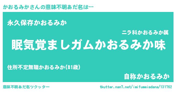 | ヘコむあだ名 | 『かおるみか(苦笑)』『豆乳』 |
