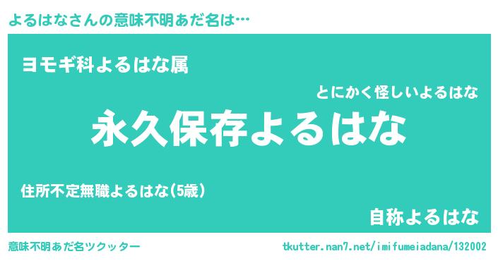 | ヒーロー風カッコイイあだ名 | 『ネオヨルハナ』『究極戦士ヨルハナ』 |