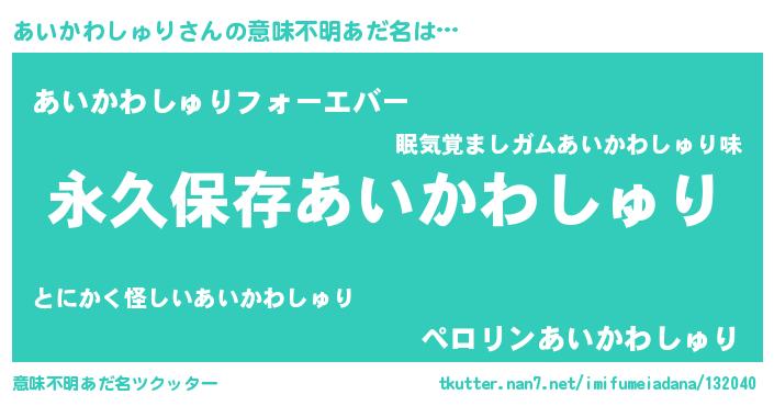 | ヘコむあだ名 | 『あいかわしゅり(笑)』『つくし』 |
