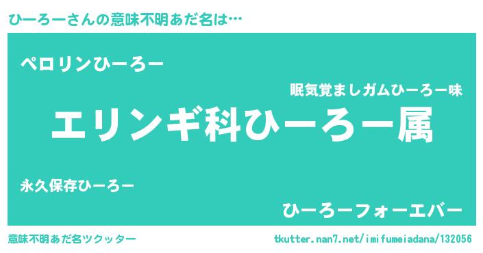 | 男性向けラノベタイトル風あだ名 | 『ヒーロースレイヤー』『ひーろーの憂鬱』 |