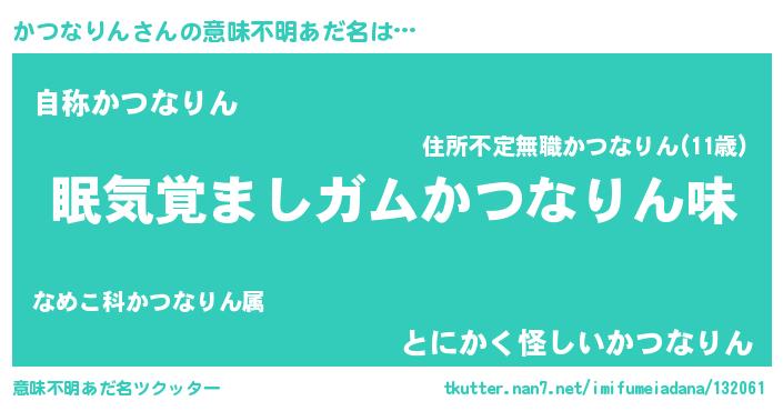 | 男性向けラノベタイトル風あだ名 | 『ノーゲーム・ノーカツナリン』 |