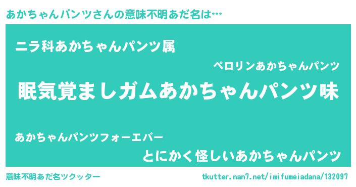 | 女子向けラノベタイトル風あだ名 | 『あかちゃんパンツ恋絵巻』 |