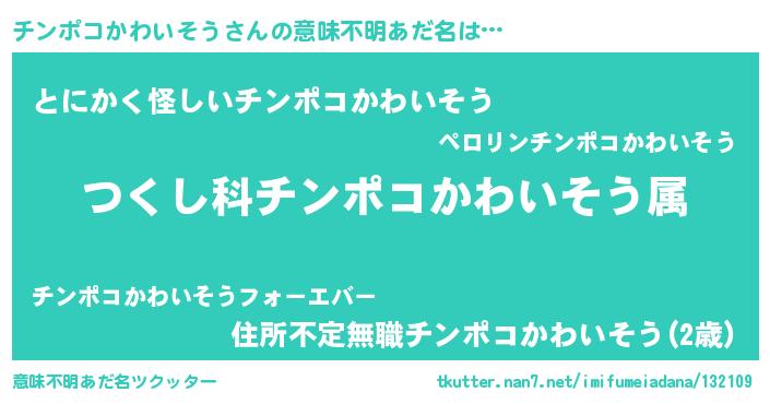 | ポケモン風あだ名 | 『チンキング』『ヒチンポコカワイソウ』 |