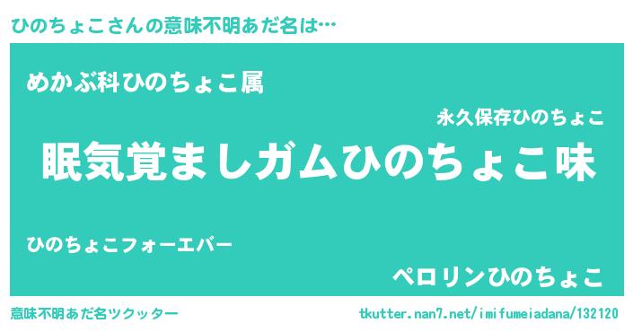 | 女子向けラノベタイトル風あだ名 | 『ひのちょこ恋絵巻』 |