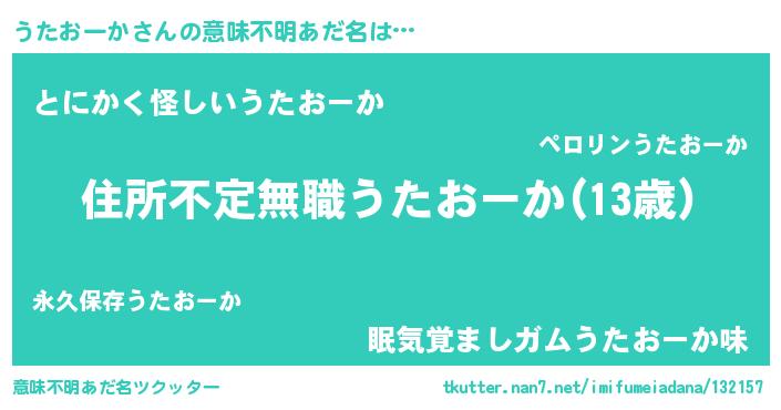 | 男性向けラノベタイトル風あだ名 | 『うたおーかに滅ぼされるだけの簡単なお仕事です』 |