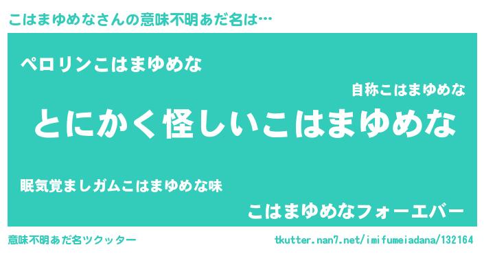 | ポケモン風あだ名 | 『ヒコハマユメナ』『コハゴンZ』 |