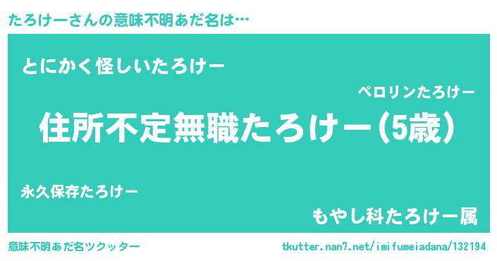 | ヘコむあだ名 | 『たろお』『たろもー』『なまこ酢』 |