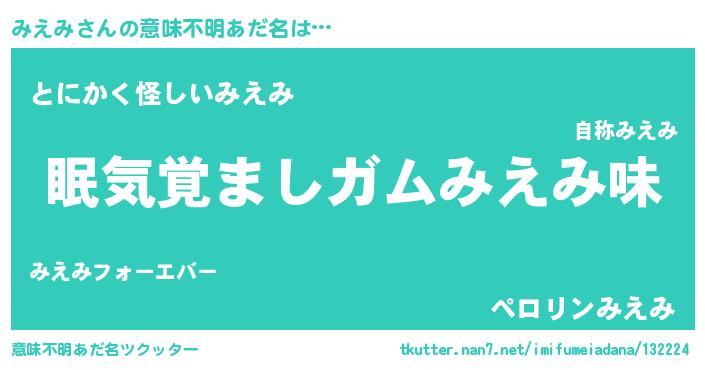 | ヘコむあだ名 | 『みえお』『みえにゅー』『つくし』 |