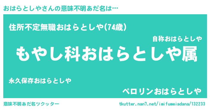 | ヘコむあだ名 | 『おはふぇ~』『おはらとしや(苦笑)』 |