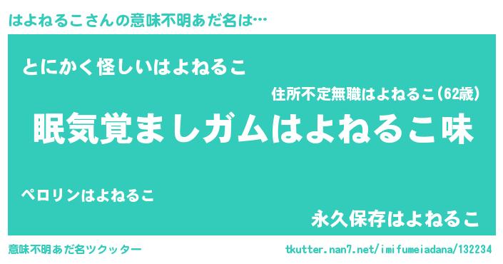 | 欧米人風あだ名 | 『アンジェラ・はよねるこ』 |
