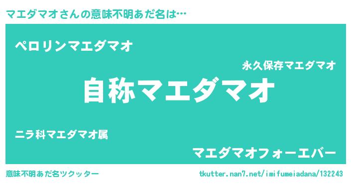 | 男性向けラノベタイトル風あだ名 | 『マエダマオに滅ぼされるだけの簡単なお仕事です』 |