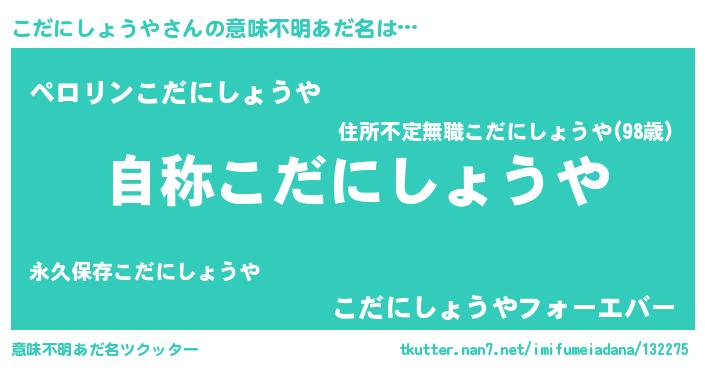 | 肩書あだ名 | 『こだにしょうや閣下』 |