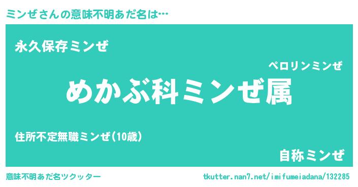 | 男性向けラノベタイトル風あだ名 | 『ミンゼスレイヤー』『魔弾の王とミンぜ』 |