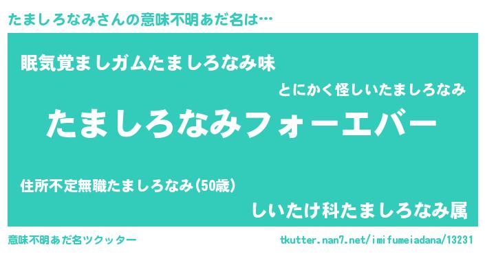 | 欧米人風あだ名 | 『たましろなみクリステル』 |