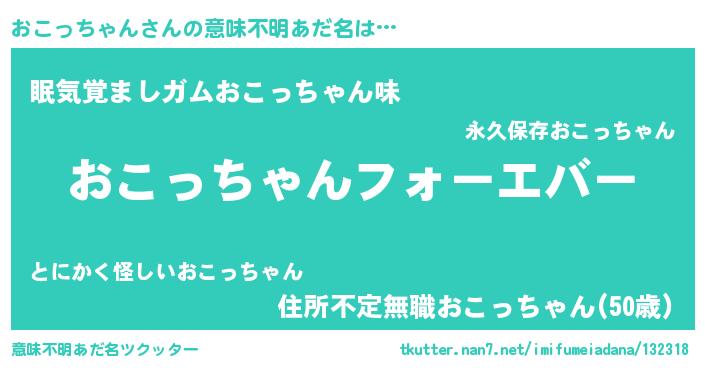 | 女子向けラノベタイトル風あだ名 | 『おこっちゃんの雑貨屋さん』 |