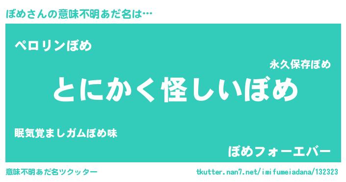 | ヘコむあだ名 | 『ぼめぷりん』『ぼめっふぃ~』 |
