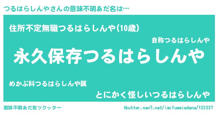 | 男性向けラノベタイトル風あだ名 | 『つるはらしんやという概念が存在しない退屈な世界 』 |