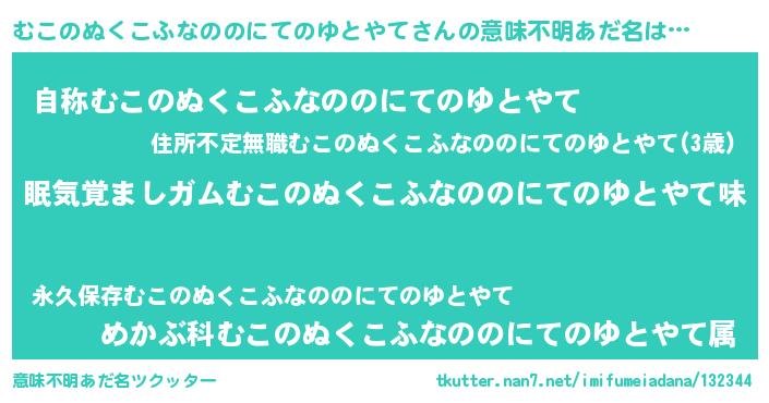 | 男性向けラノベタイトル風あだ名 | 『おまえをオタクにしてやるから、俺をむこのぬくこふなののにてのゆとやてにしてくれ! 』 |