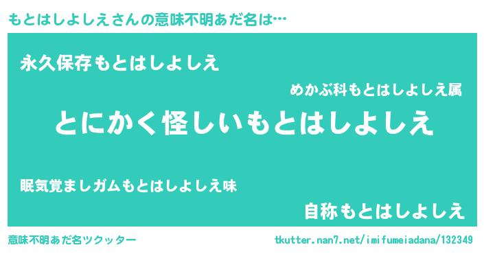 | 料理風あだ名 | 『もとはしよしえの炊き込みご飯』 |