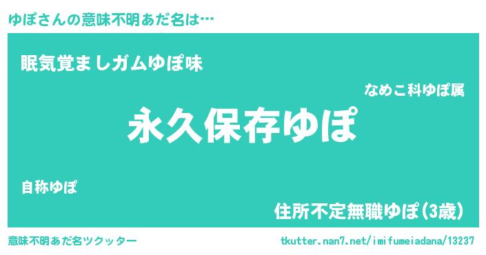 | 男性向けラノベタイトル風あだ名 | 『ゆぽという概念が存在しない退屈な世界 』 |