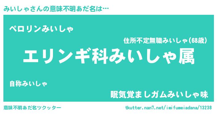 | ポケモン風あだ名 | 『ミイゴンZ』『ミイキング』 |