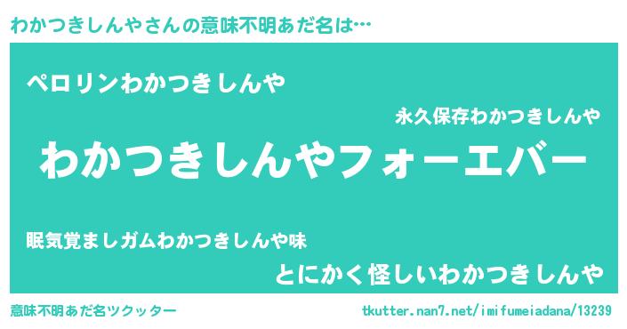| 女子向けラノベタイトル風あだ名 | 『わかつきしんやの雑貨屋さん』 |