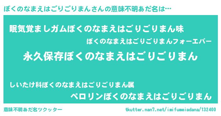| 女子向けラノベタイトル風あだ名 | 『異世界でカフェぼくのなまえはごりごりまんを開店しました。』 |