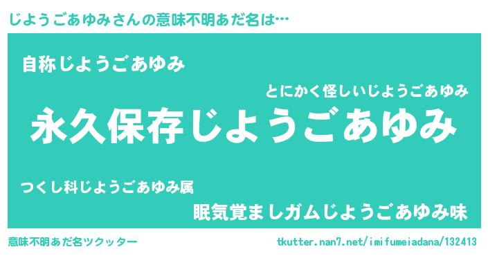| 男性向けラノベタイトル風あだ名 | 『じようごあゆみという概念が存在しない退屈な世界 』 |