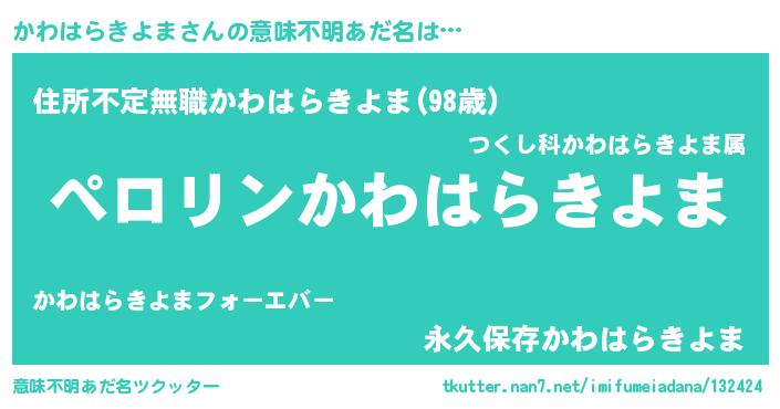 | 欧米人風あだ名 | 『アンジェラ・かわはらきよま』 |