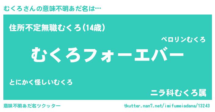 | 欧米人風あだ名 | 『むくろクリステル』『ダレノガレむくろ』 |