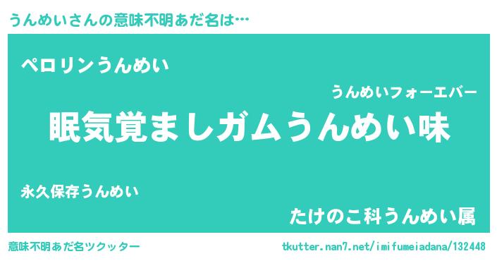 | ヒーロー風カッコイイあだ名 | 『慈愛の使者うんめい』『ネオウンメイ』 |