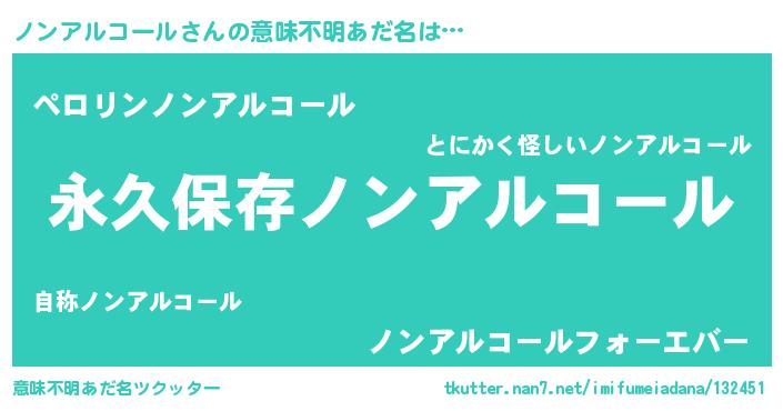 | 男性向けラノベタイトル風あだ名 | 『ノンアルコールという概念が存在しない退屈な世界 』 |